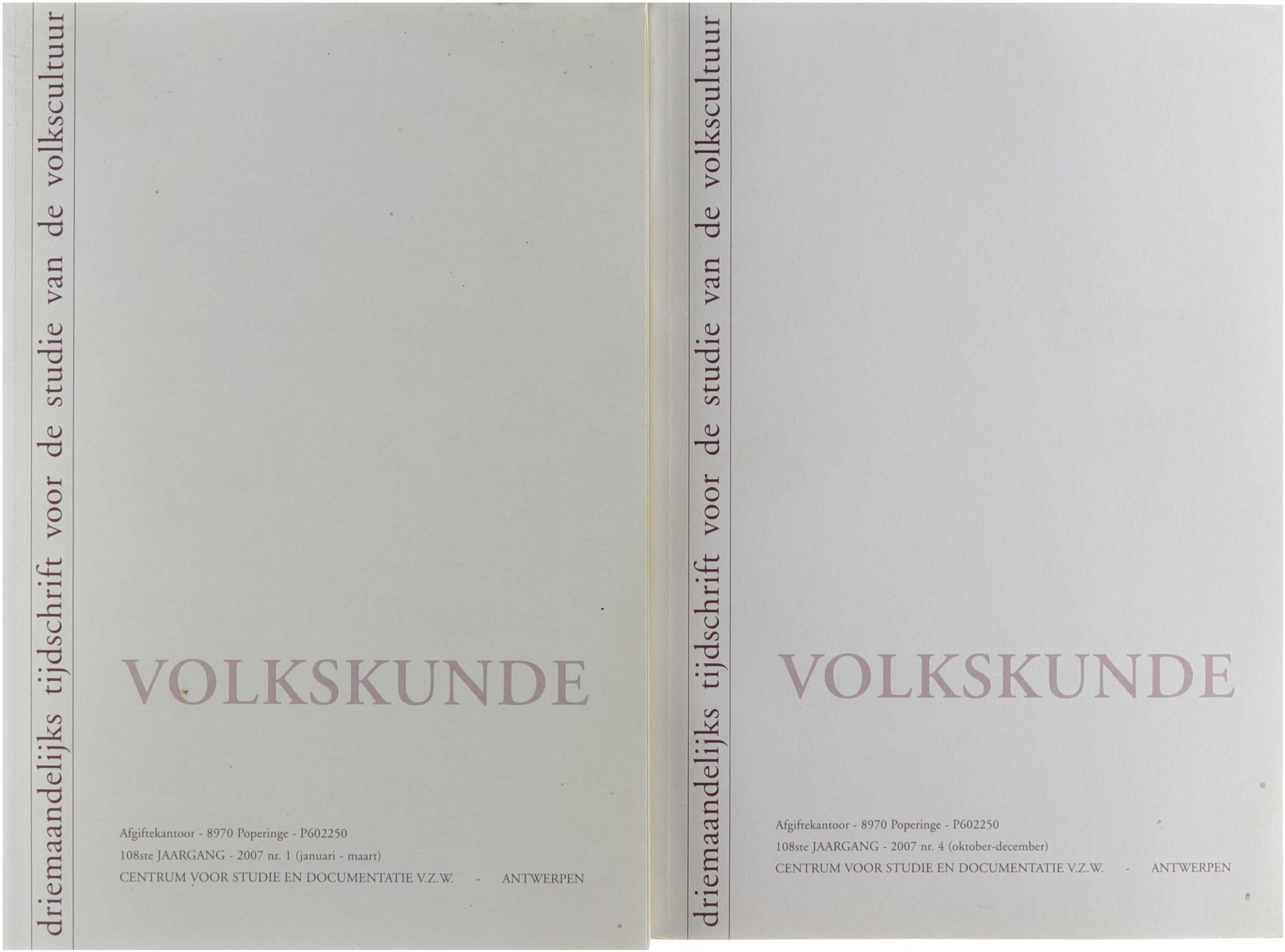 Volkskunde. Driemaandelijks tijdschrift voor de studie van het volksleven. 108° jaargang nummers 1-2-3-4)