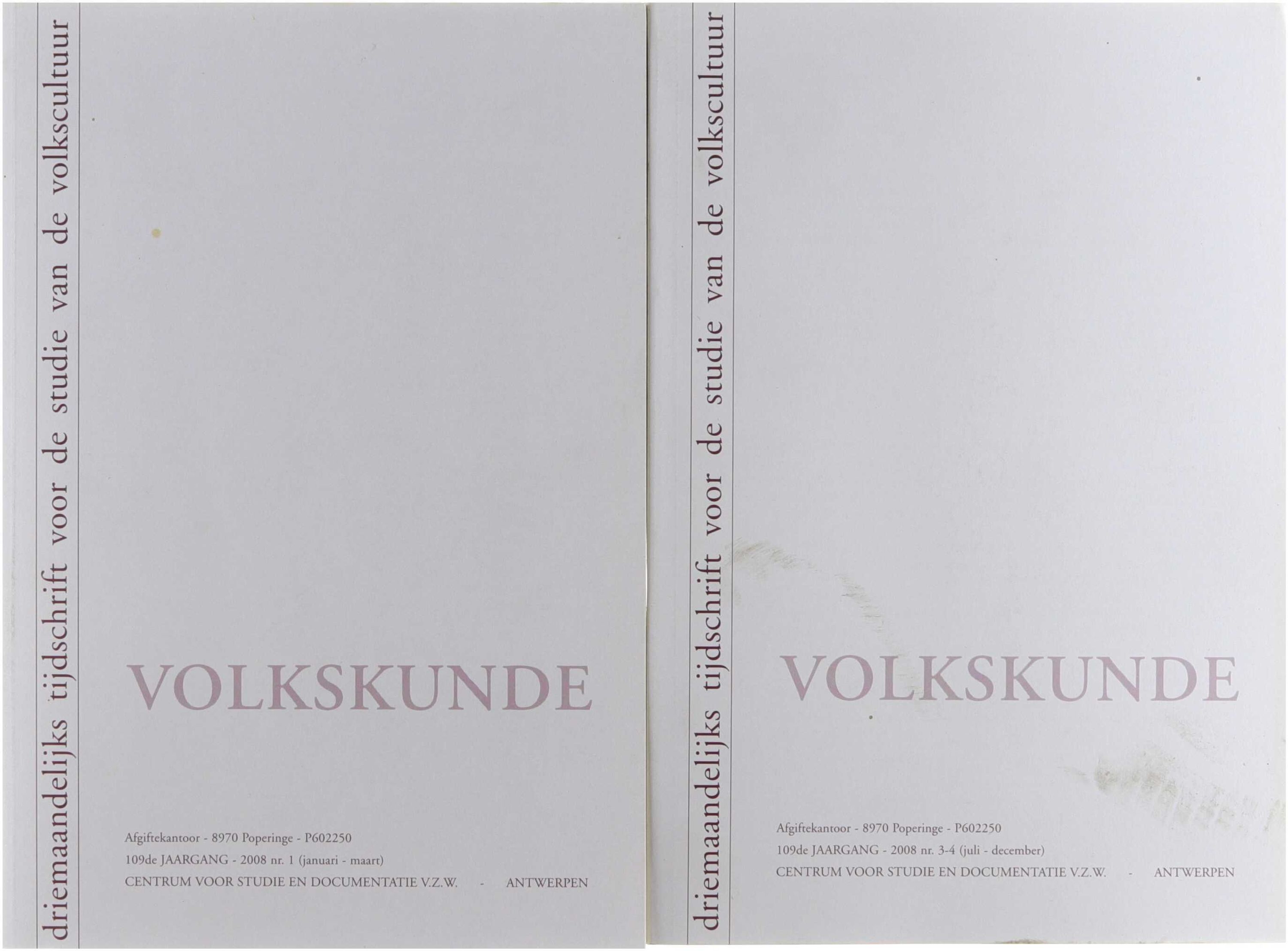 Volkskunde. Driemaandelijks tijdschrift voor de studie van het volksleven. 109° jaargang 4 nummers in 3 boeken