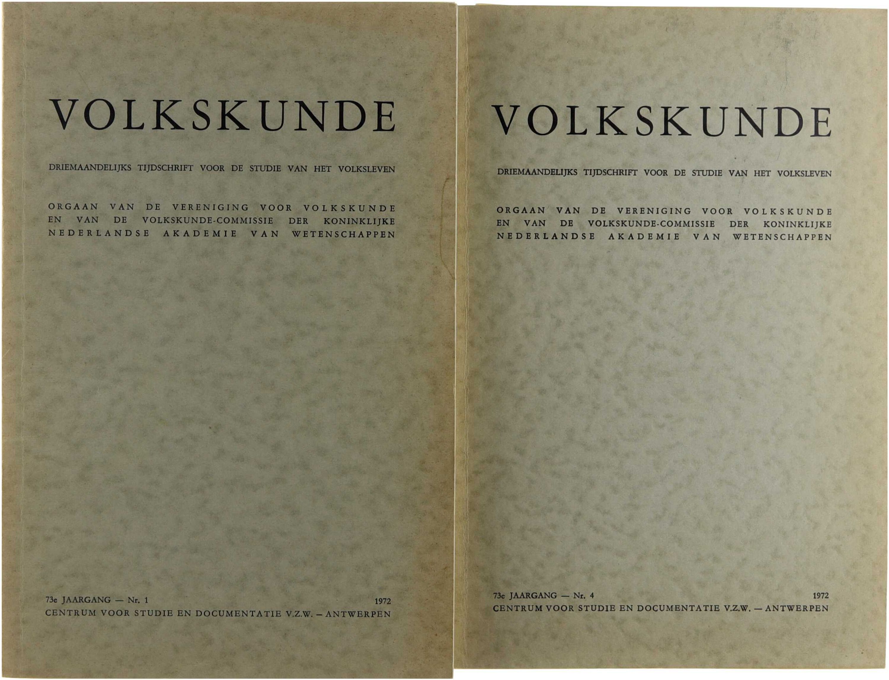 Volkskunde. Driemaandelijks tijdschrift voor de studie van het volksleven.73° jaargang 1-2-3-4