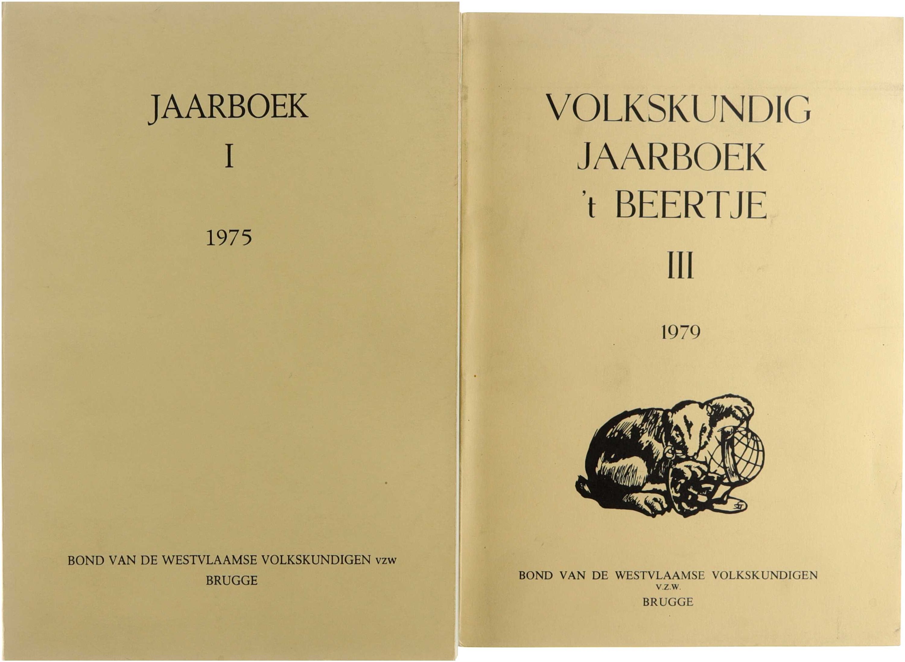 Pakket van 3 jaarboeken die de jaren 1975 t.e.m. 1979 behandelen. Inhoud: S. Top, Bakelandt in de geschiedenis en de Volkskunde; A. Lowyck, Het moordlied in de Westhoek der Nederlanden in Frankrijk tot 1860; W.P. DEZUTTER, Iconografie van de straat- en marktzanger in Vlaanderen; M. CAFMEYER, Ik kom van Kanegem; H. DEMAREST, De Maatschappij Gaaibolders; J. GELDHOF, Publieke veiling van de stoeldraaierij Herman Huuskens, Brugge 16 aug. 1666; H. STALPAERT, Liefde en huwelijk in twee Westvlaamse gelegenheidsliederen; J. VAN HAVER, Volksgeneeskunde; G. VERMEULEN, Sint-Antonius-abt in de volksdevotie; S. TOP, Volkskunde : van curiosum tot re- en innovatie; A. BONNEZ, Leugenvertelsels uit het Westland; F. DEBRABANDERE, De plaatsnaam Wijngaard; H. DEMAREST, Beewegen van St.-Anna naar O.-L.-Vrouw van 't Boompje; J. DE SMET, Stadsmest en mestrapers; E. LEPEER, Dertien; S. TOP, Nieuw lied op de wreede euveldaden van Baekeland en zijne bende; J. VAN DEN HEUVEL, Een oudere tekst van het Grimminck-lied; H. STALPAERT, De devotieprent van Sint-Antonius-abt te Brugge; R.V. VERBEKE, Dienstplicht en Soldatenleven; H. STALPAERT, Soldatenlied en soldatenliefde; (H. STALPAERT) Het oorlogsdagboek van E. Dewispelaere; (G. DEHULSTER) Uittreksels uit het dagboek Oorlog 1914-191van Maurits Dehulster; F. DEBRABANDERE, Familienamen van krijgslieden; H. DEMAREST, Prentpatrimonium van S. Jan te Brugge