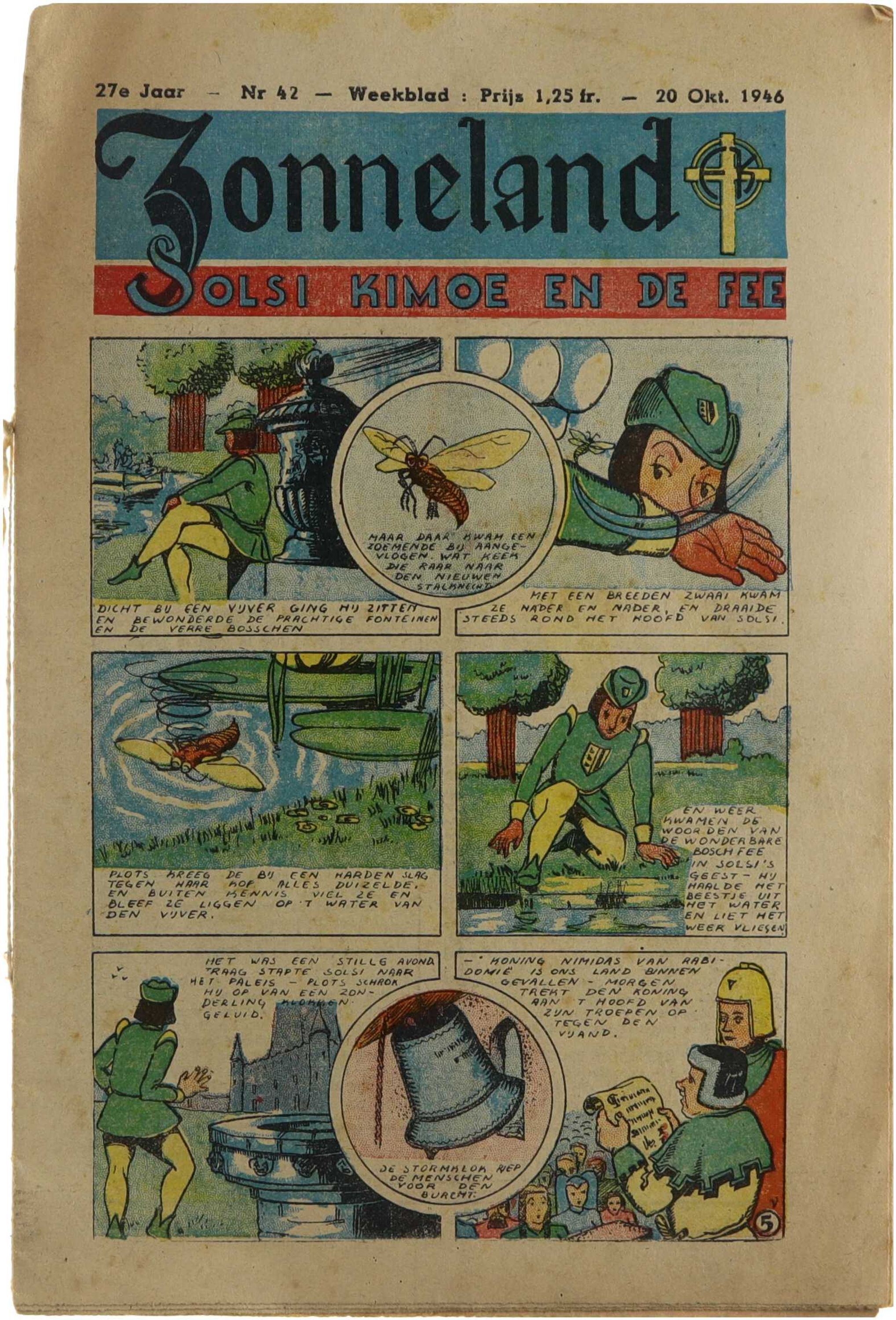 Zonneland was een wekelijks katholiek jeugdblad, uitgegeven door Goede Pers (Averbode), bestemd voor kinderen en jongeren die verbonden waren met de katholieke jeugdbeweging en de Eucharistische Kruistocht. De nummers uit 1946 verschenen in een periode van naoorlogse normalisering en boden een vaste mix van religieuze vorming, opvoedende en moraliserende teksten, verhalen, rubrieken voor ontspanning en bijdragen die gericht waren op geloofsbeleving, gemeenschapszin en persoonlijke ontwikkeling. Het tijdschrift speelde een belangrijke rol in de katholieke jeugdopvoeding en bevatte bijdragen van vaste medewerkers zoals Daniël De Kesel, beter bekend als Nonkel Fons