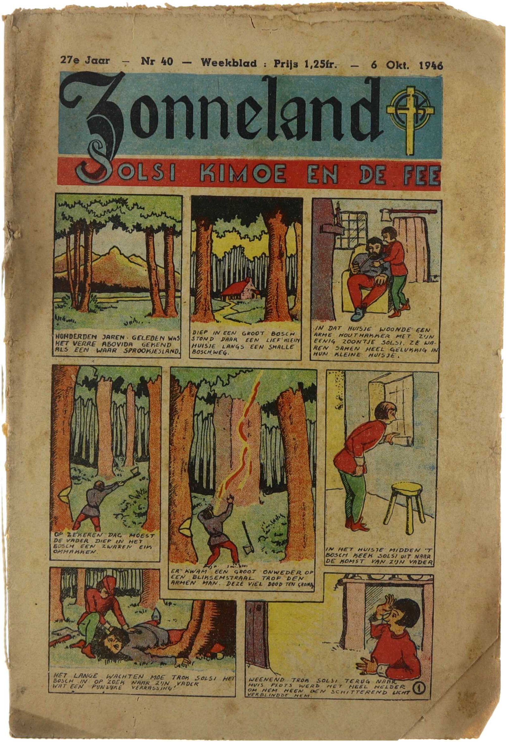 Zonneland was een wekelijks katholiek jeugdblad, uitgegeven door Goede Pers (Averbode), bestemd voor kinderen en jongeren die verbonden waren met de katholieke jeugdbeweging en de Eucharistische Kruistocht. De nummers uit 1946 verschenen in een periode van naoorlogse normalisering en boden een vaste mix van religieuze vorming, opvoedende en moraliserende teksten, verhalen, rubrieken voor ontspanning en bijdragen die gericht waren op geloofsbeleving, gemeenschapszin en persoonlijke ontwikkeling. Het tijdschrift speelde een belangrijke rol in de katholieke jeugdopvoeding en bevatte bijdragen van vaste medewerkers zoals Daniël De Kesel, beter bekend als Nonkel Fons