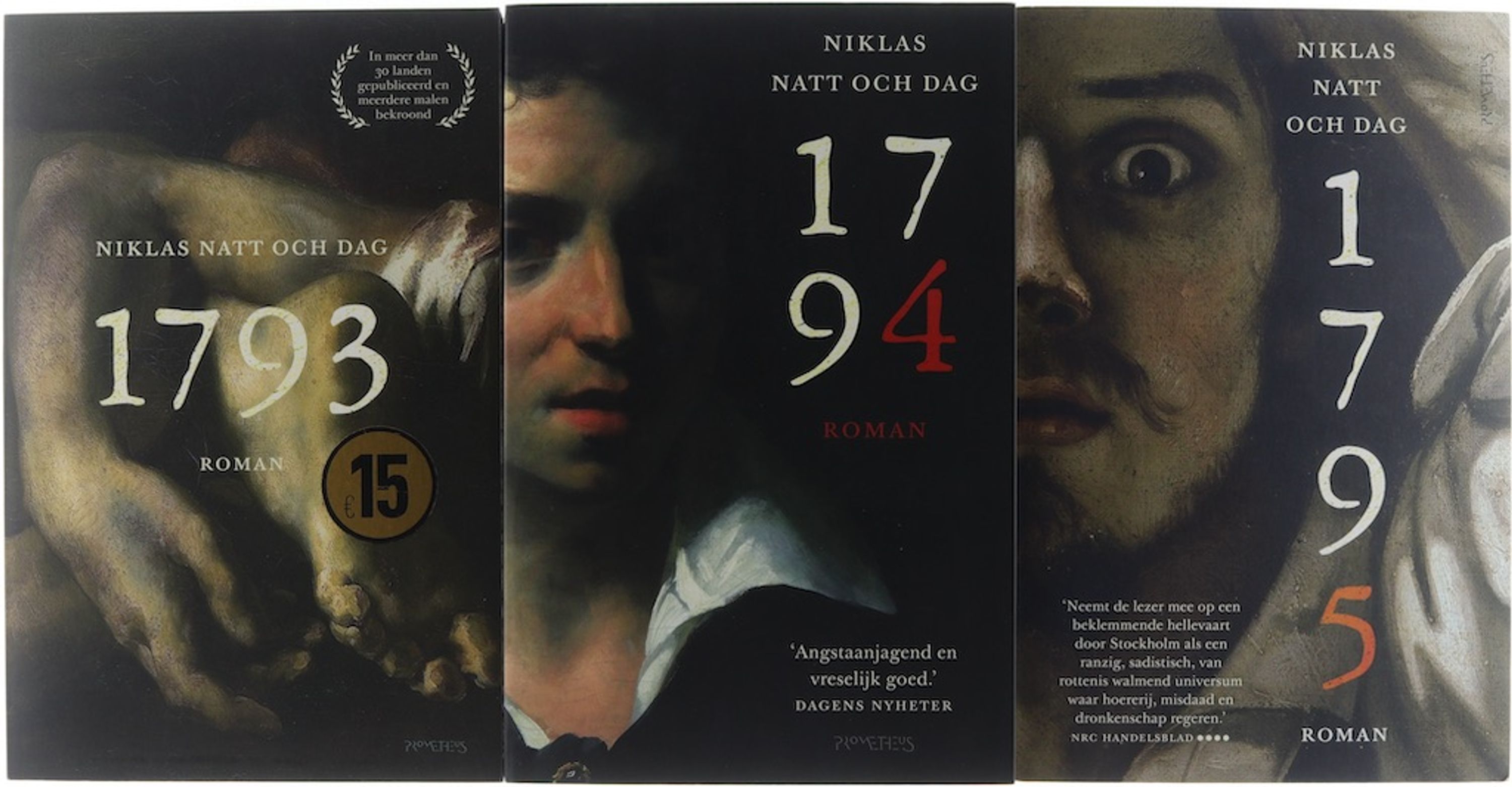 In het door armoede, stank en machtsmisbruik geteisterde Stockholm van het late achttiende eeuwse Zweden wordt in 1793 een verminkt lijk opgevist uit de Fatburen. De geharde, éénarmige veteraan Mickel Cardell slaat met de zieke jurist Cecil Winge de handen ineen om de gruwel te ontrafelen en stuit op een netwerk waarin welgestelden hun misdaden onzichtbaar willen houden. In 1794 rolt een nieuwe zaak aan: een moeder vraagt de waarheid over de dood van haar dochter op de huwelijksnacht. Het spoor voert van salons in Stockholm naar de Zweedse kolonie Sint-Bartholomeus, waar handel, slavernij en geweld onlosmakelijk verknoopt blijken. De intriges draaien steeds nadrukkelijker rond de geraffineerde schurk Tycho Ceton. In 1795 komt alles tot een apotheose. Emil Winge, Cecils broer, sluit zich bij Cardell aan voor de jacht op Ceton, terwijl de overlevende Anna Stina Knapp een lijst bezit die de namen van machtige samenzweerders bevat. Het centrum van de macht—met het Palatset Makalös als decor—wordt toneel van afrekeningen waarin gerechtigheid en overleving op het scherp van de snede staan. Samen vormen de drie delen een donkere, meeslepende kroniek over een stad in ontbinding, waar individuele moed en menselijkheid botsen met corruptie, klasse en brute willekeur. 9789044640434 / 9789044642964 / 9789044643541