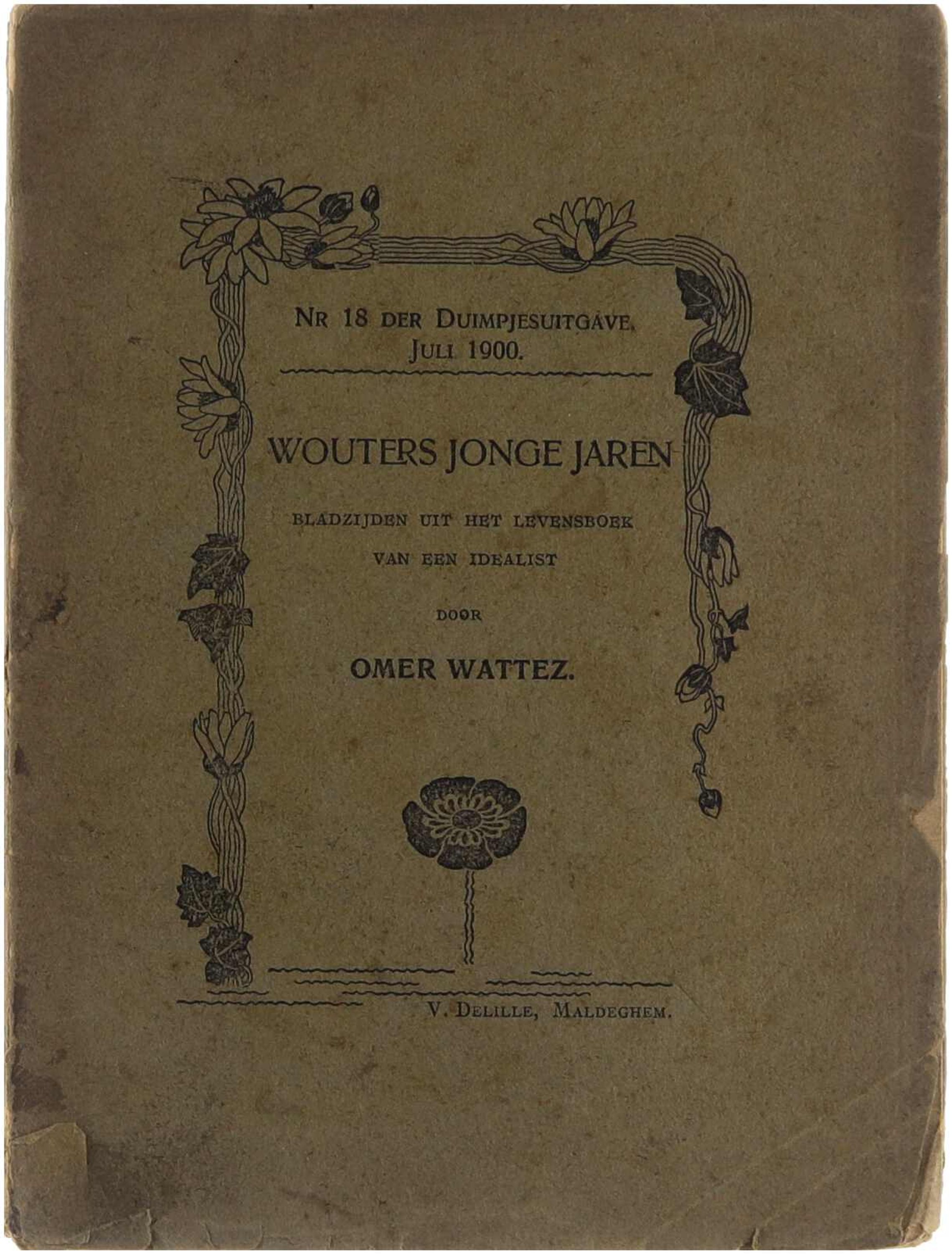 In dit literaire werk ‘Wouters jonge jaren. Bladzijden uit het levensboek van een idealist’ beschrijft Omer Wattez op verhalende wijze de jeugd- en coming-of-age-ervaringen van Wouters, een idealistisch personage. Het behoort tot de reeks van de Duimpjes-uitgaven (nr. 18) die kleine novellen of verhalenbundels in het begin van de 20e eeuw in Vlaanderen brachten, uitgegeven door V. Delille te Maldeghem
