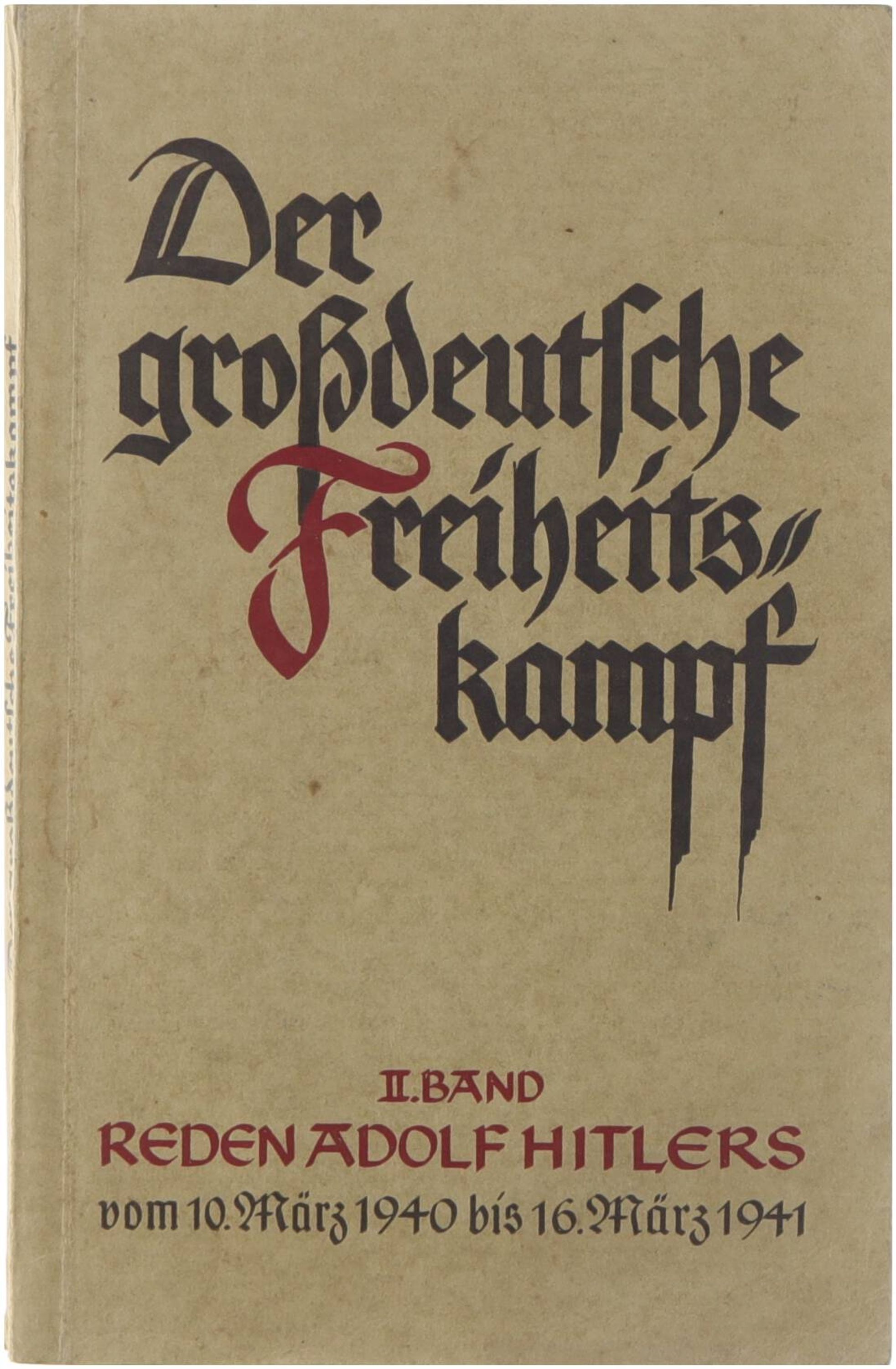 Reden Adolf Hitlers vom, 10. März 1941 bis 16.März 1941. Mit Porträt Adolf Hitler. Zentralverlag der N.S.D.A.P.,München,1941. 270 Seiten in12. Broschiert. Gut,