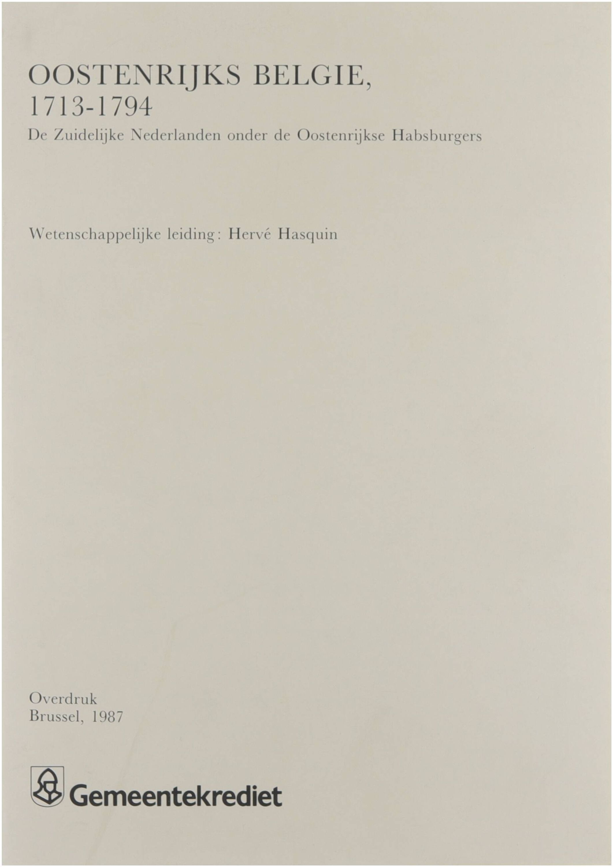 Oostenrijks Belgie, 1713-1794 : de Zuidelijke Nederlanden onder de Oostenrijkse Habsburgers. Hasquin Hervé (1942- ).