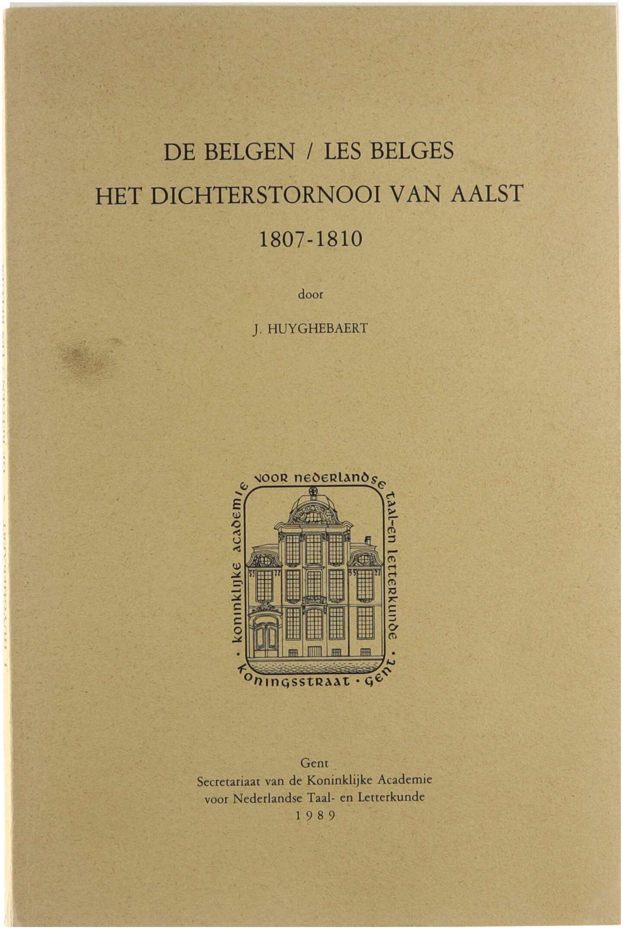 In dit werk wordt het tweetalige dichterstornooi dat in de jaren 1807-1810 te Aalst werd georganiseerd, onder de titel “De Belgen / Les Belges”, grondig bestudeerd. Huyghebaert situeert de prijskamp in de periode van Franse overheersing (ca. 1792/94-1814) en onderzoekt hoe in de inzendingen het nationale bewustzijn en gevoelens van identiteit tot uiting komen. Hij analyseert de deelnemers, de literaire context van hun tijd, en de betekenis van deze dichtwedstrijd in het bredere Vlaamse literaire leven onder Frans bewind.
