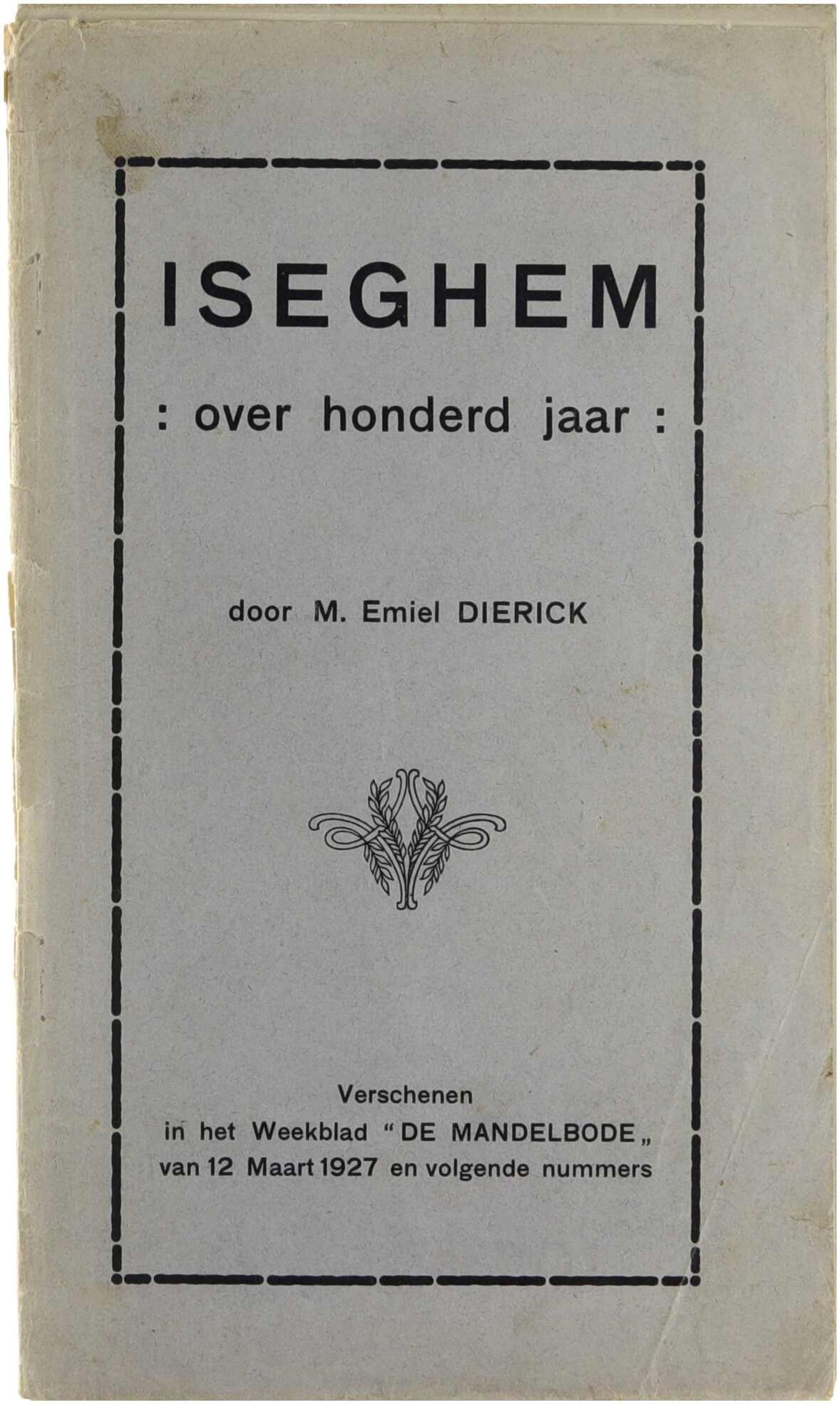 Iseghem. Over honderd jaar (verschenen in het weekblad "De Mandelbode" van 12 maart 1927 en volgende nummers