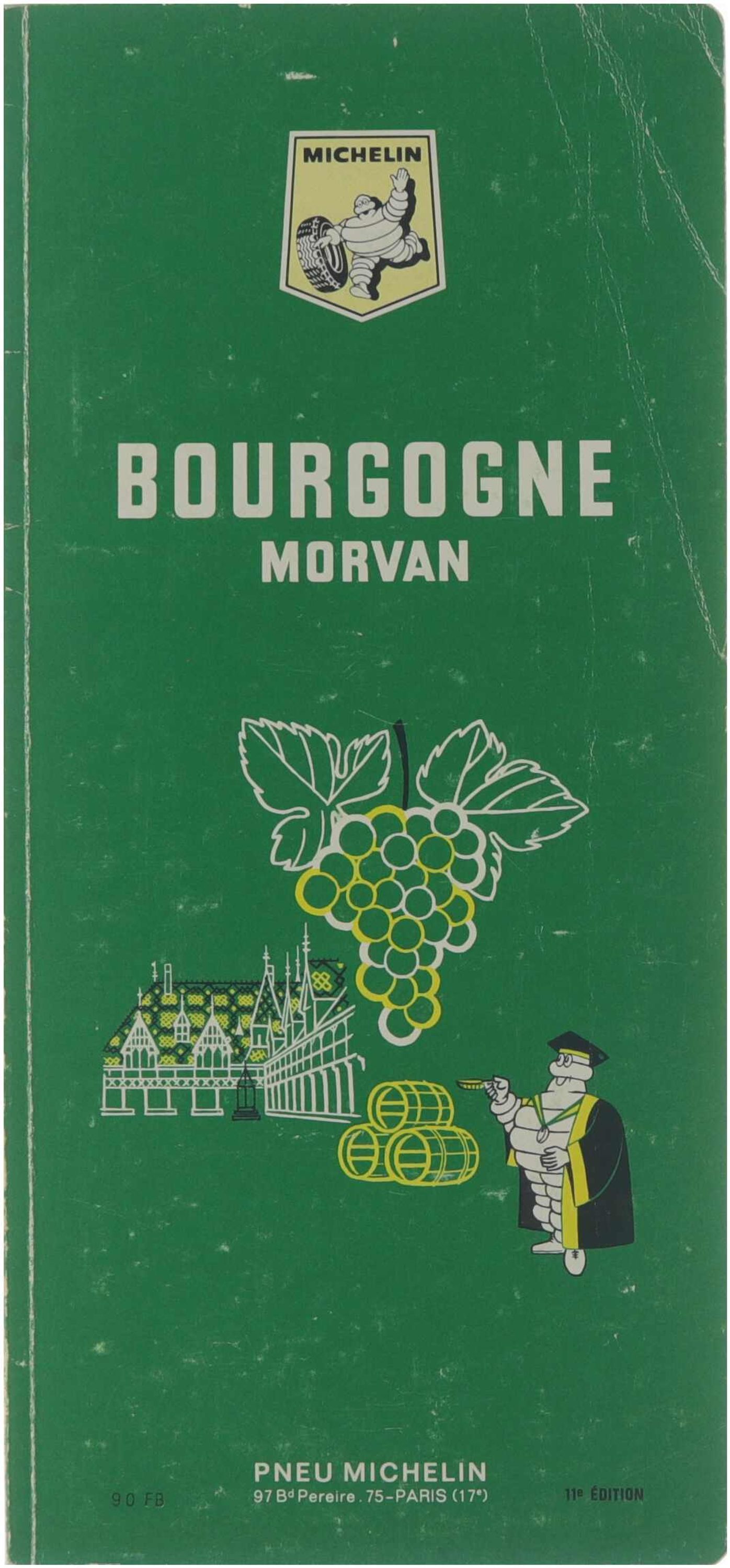 SOMMAIRE - Un mot de Bibendum p. 2: Comment se servir de ce guide. La Bourgogne p. 3: Un bref tableau de la région. Abréviations et signes conventionnels p. 5: employés dans les textes, sur les plans et sur les schémas. La pêche p. 6-7: Lieux et réglementation. Principales curiosités et régions touristiques p. 8 à 31: Sur la carte figurent, selon leur importance, les routes touristiques les plus curieuses: les églises, les châteaux et les routes les plus pittoresques. Introduction au Voyage p. 10 à 21: Généralités: la formation du pays, Les terroirs bourguignons, Les pays bourguignons, Quelques faits historiques, L'art en Bourgogne (L'art roman, L'art gothique, L'art de la Renaissance, Quelques livres), La vie littéraire et historique, La vie locale (La table bourguignonne, la vigne, L'élevage bovin). Principales manifestations régionales p. 40-41. Programmes de voyage p. 42: 2 programmes de visite de 5 jours, 1 programme de visite de 3 jours. Lieux de séjour p. 43 à 170: Santé et bien-être, Centres thermaux. Où goûter dans un cadre agréable p. 171 à 173. Villes, sites, curiosités et régions touristiques p. 171 à 173: dans l'ordre alphabétique: le mot Dijon et Auxerre est séparé par un grand nombre de localités de moindre importance; chaque localité prend dans notre chapitre une place proportionnée à son importance. Selon l'intérêt touristique des localités, nous donnons: - les principaux faits de l'histoire locale, - une description des édifices et œuvres d'art étudiés et classés dans l'ordre: architecture religieuse, architecture civile. Index alphabétique. MANUFACTURE FRANÇAISE DES PNEUMATIQUES MICHELIN © Michelin et Cie, propriétaires-éditeurs, 1968. Société en commandite par actions au capital de 220 millions de francs. Siège social: Clermont-Ferrand, place des Carmes-Déchaux. - R. C. Clermont-Fd B 855 200 507 (63-B-50). Imp. SCHNEIDER FRÈRES ET MARY, Langres. - Printed in France 3-66-32. 2e trimestre 1968.