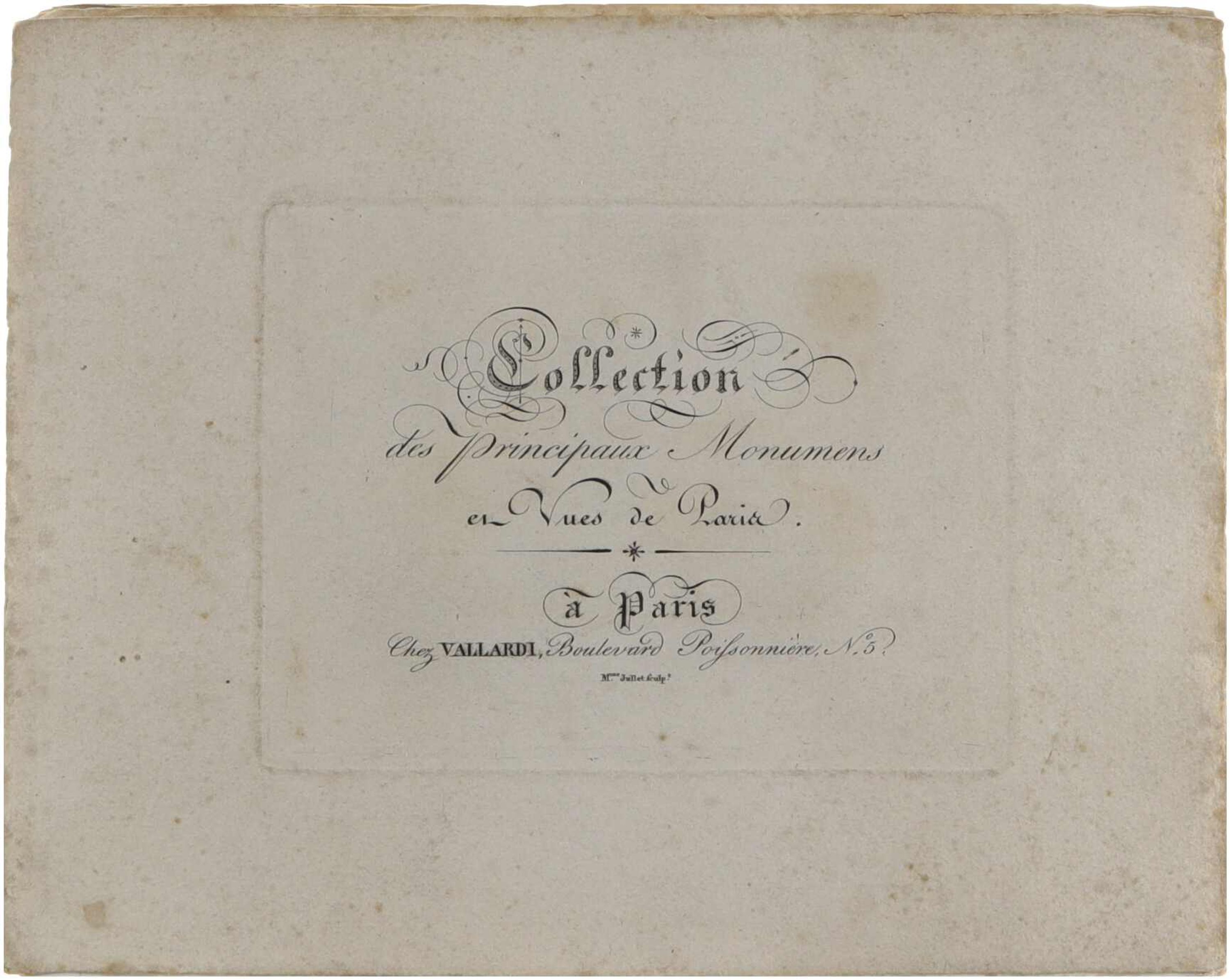 Cet ouvrage présente une collection de gravures montrant les principaux monuments et vues de Paris vers 1820, publiées à Paris chez Vallardi. Les gravures illustrent les édifices, places et perspectives de la capitale française, offrant un panorama visuel des monuments parisiens à l’époque. Je n’ai aucune idée si cette collection de planches détachées est complète ou non.