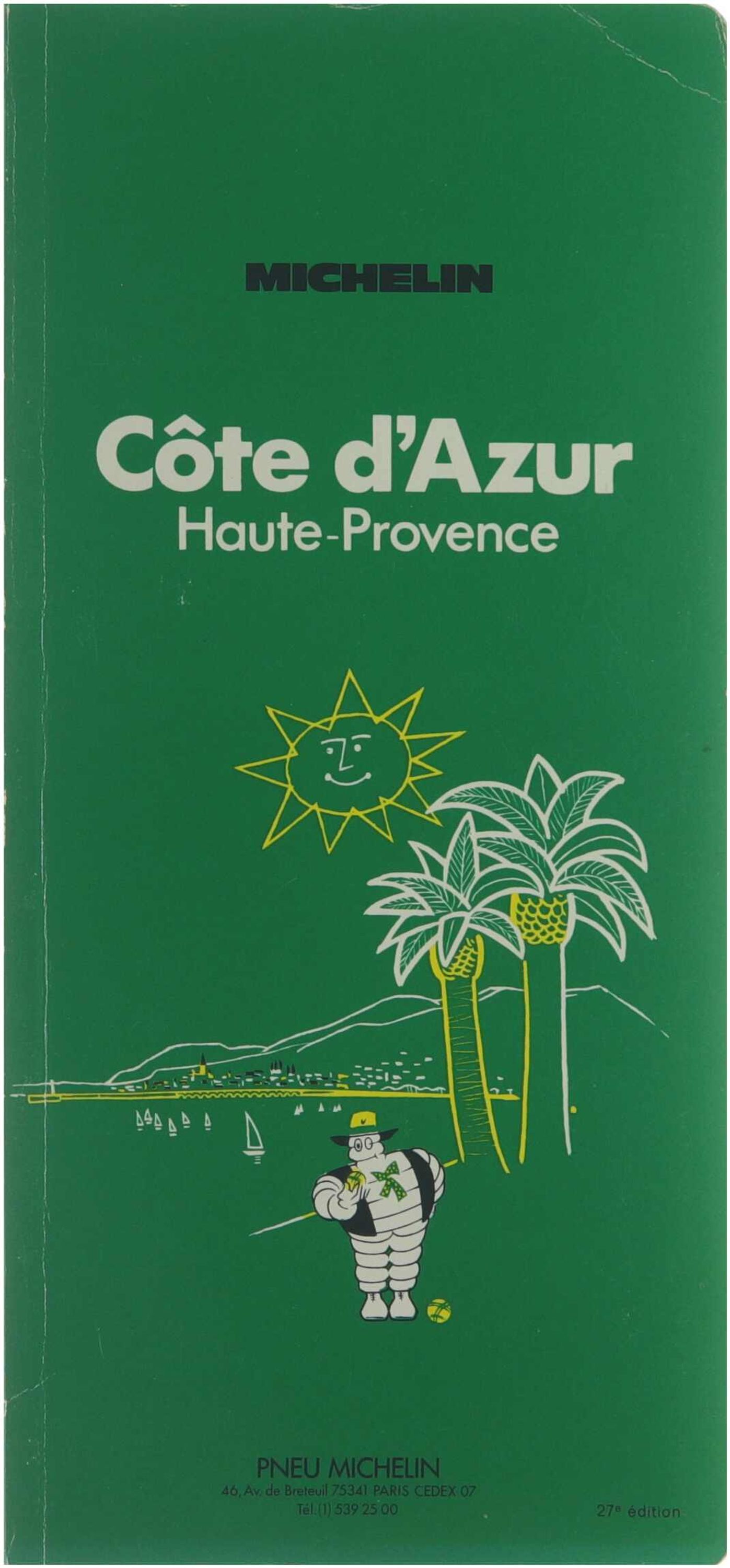 SOMMAIRE - RENSEIGNEMENTS PRATIQUES p. 4 à 6: Formalités douanières. Les saisons. Principales manifestations régionales. Quelques livres. Assemblage des schémas de ce guide. Tarifs et heures de visite. CARTE DES PRINCIPALES CURIOSITÉS ET DES RÉGIONS TOURISTIQUES p. 7 à 9. INTRODUCTION AU VOYAGE p. 10 à 29: Physionomie du pays p. 10 à 13: les contrastes, formation du sol, le relief, la côte, la Méditerranée, les cours d'eau. La végétation p. 14-15: les arbres, les arbustes, les plantes grasses, les incendies de forêts. Activités économiques p. 16-17: produits floraux et primeurs, autres industries. Quelques faits historiques p. 18-19. L'art p. 20-25: Art et architecture, Côte d'Azur. La vie traditionnelle p. 26 à 29: les traditions de Noël, la musique et les chants, à l'ombre des pins, les villages perchés, l'accent provençal, le jeu de boules, l'artisanat. ITINÉRAIRES DE VISITE RÉGIONAUX p. 30 à 32. LIEUX DE SÉJOUR - SPORTS ET DISTRACTIONS p. 33 à 41. SIGNES CONVENTIONNELS p. 42. VILLES, CURIOSITÉS ET RÉGIONS TOURISTIQUES p. 43 à 153: Selon l'importance touristique des localités, nous donnons: Les principaux faits de l'histoire locale, Une description des « Principales curiosités », Une description des « Autres curiosités », Sous le titre « Environs », un choix de promenades proches ou lointaines au départ des principaux centres. INDEX ALPHABÉTIQUE p. 154 à 156. MANUFACTURE FRANÇAISE DES PNEUMATIQUES MICHELIN © Michelin et Cie, propriétaires-éditeurs, 1978. Société en commandite par actions au capital de 700 millions de francs. R.C. Clermont-Fd B 855 200 507 (63-B-50) - Siège social Clermont-Fd (France) ISBN 2 06 003 170 3. Imprimerie JOUVE, Grateloup, Mayenne - Printed in France 11-77-110 - Dépôt légal, 2e tr. 1978.
