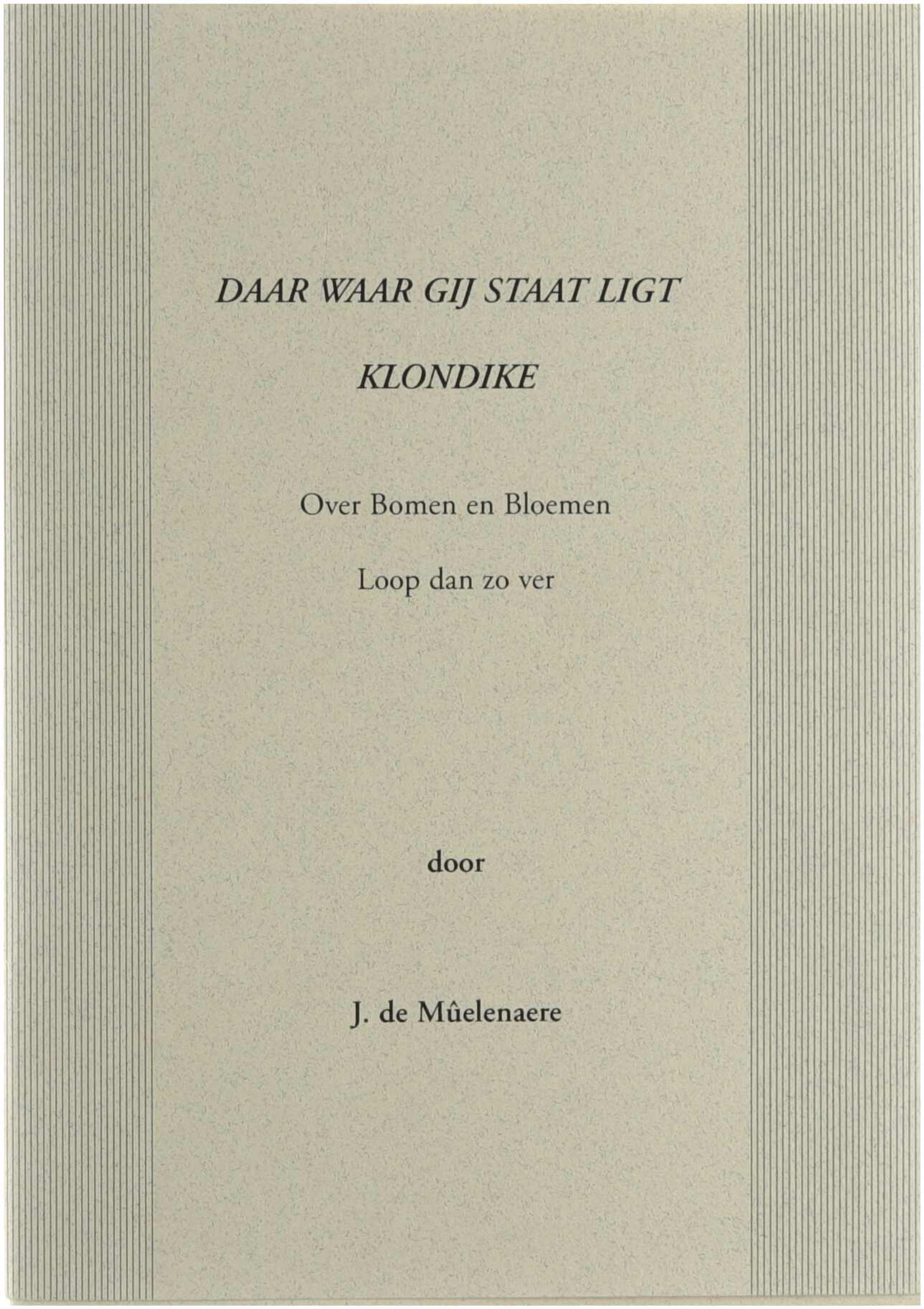 Daar waar gij staat ligt Klondike. Over bomen en Bloemen. Zoek ze niet te ver
