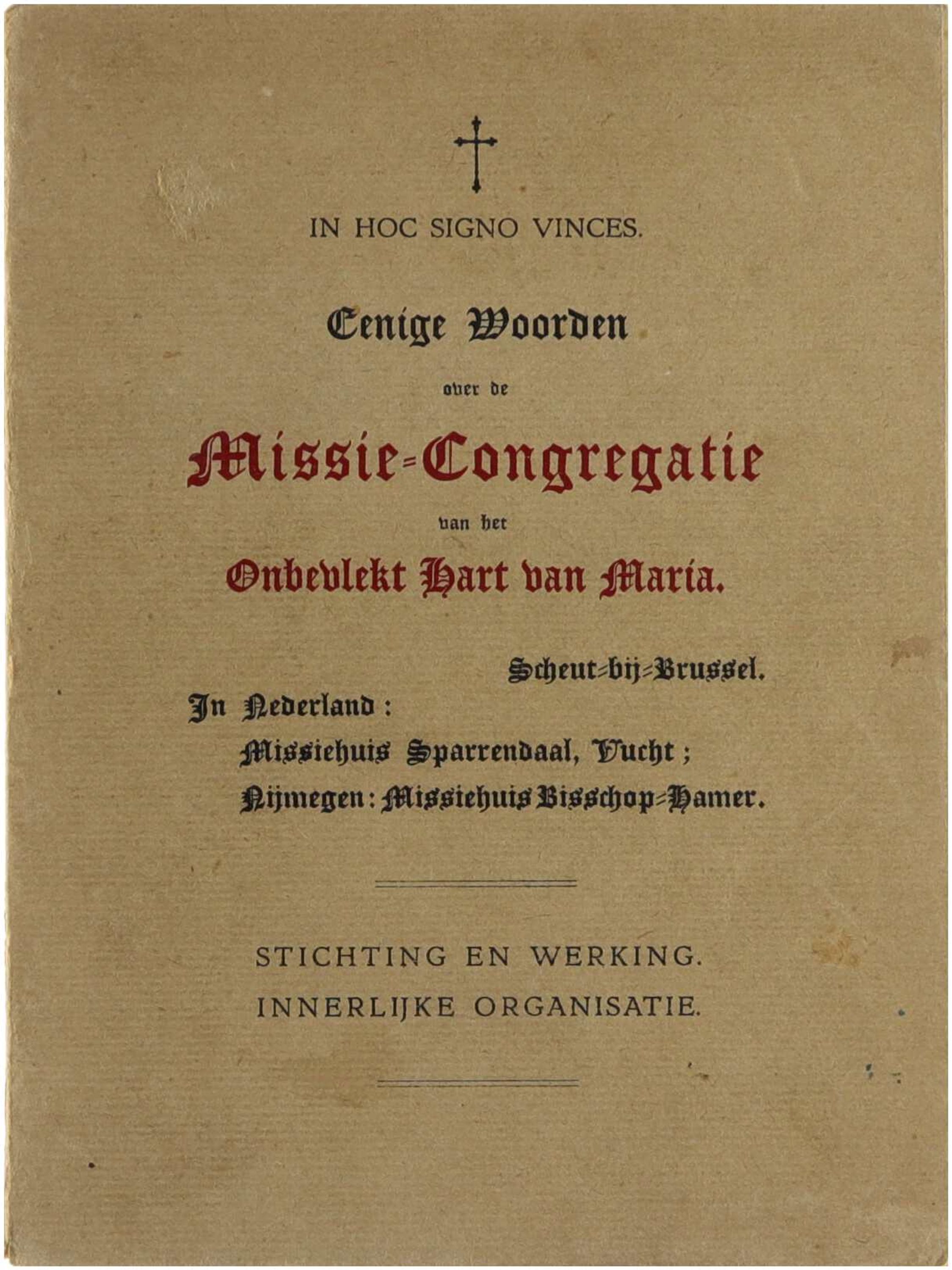 In hoc signo vinces. Eenige woorden over de missie-congregatie van het onbevlekt hart van Maria, Scheut bij Brussel. Stichting en werking. Innerlijke organisatie