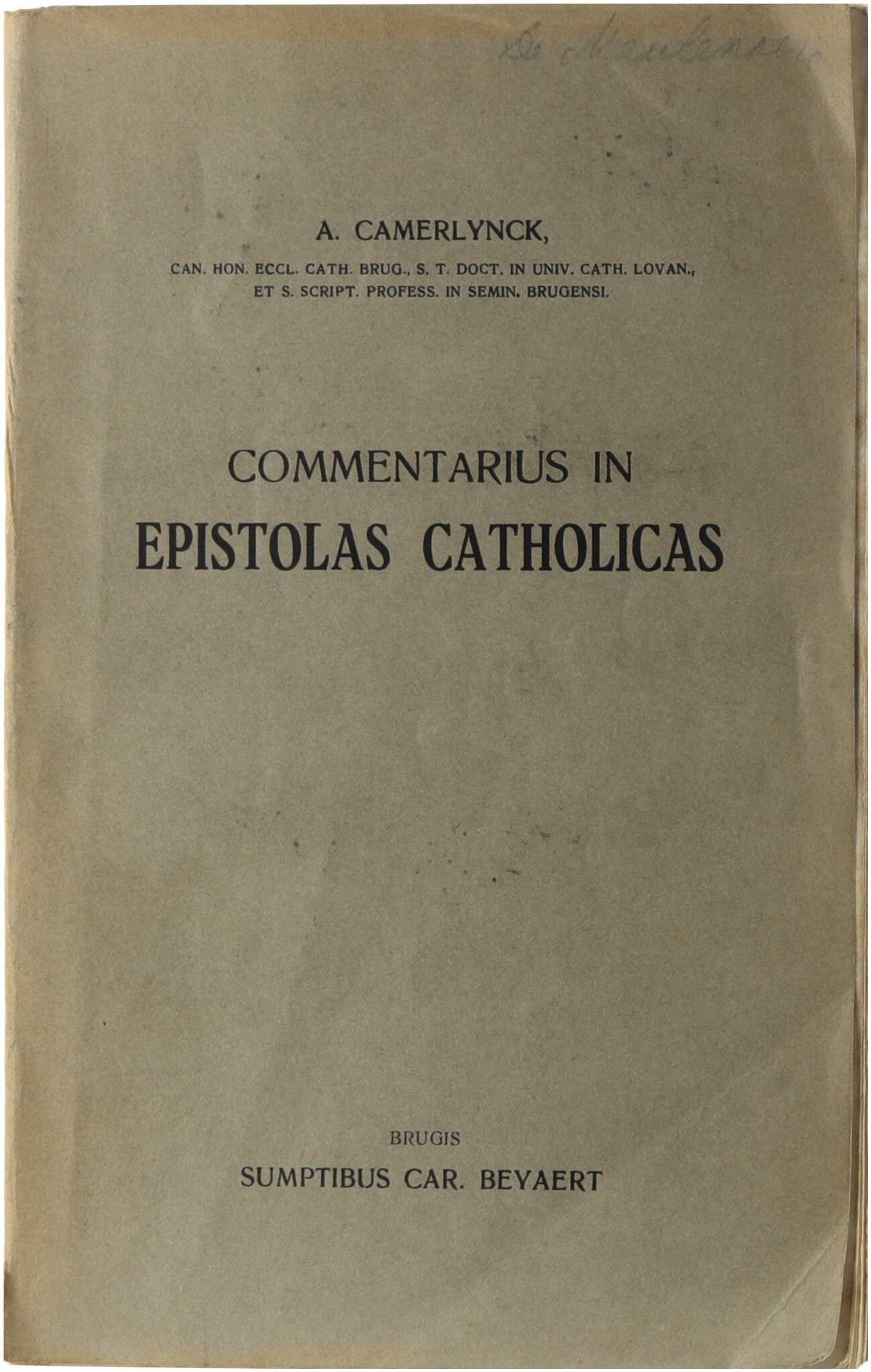 Commentarius Brugensis in S. scripturam est commentarius theologicus in Epistolas Catholicas, operâ Achilli Camerlynck, editus Bruggis anno 1909. In hac 5ᵃ editione, denuo emendata et multa adaugata, recensentur versio Vulgatae una cum nota explicativa et interpretationibus scholasticis. Auctor evolvit explicatio versuum, rationem doctrinarum redactam ex textu scripturae, cum referentiis patribus, argumento historico-contextuali et applicationibus morali-pastoralibus. Utriusque epistolae (I, II Petri; Jacobi; I, II, III Ioannis; I et IIe, IIIe Iudae) tractantur methodice: exordium, contenta, difficultates linguisticae, sensus quae scriptura plena tradit, atque usus ecclesiasticus. Hic commentarius intendit auxilium esse sacerdotibus, scholasticis et lectoribus biblicis ad magis rigide intellegendam doctrinam catholicam in epistolis universis.