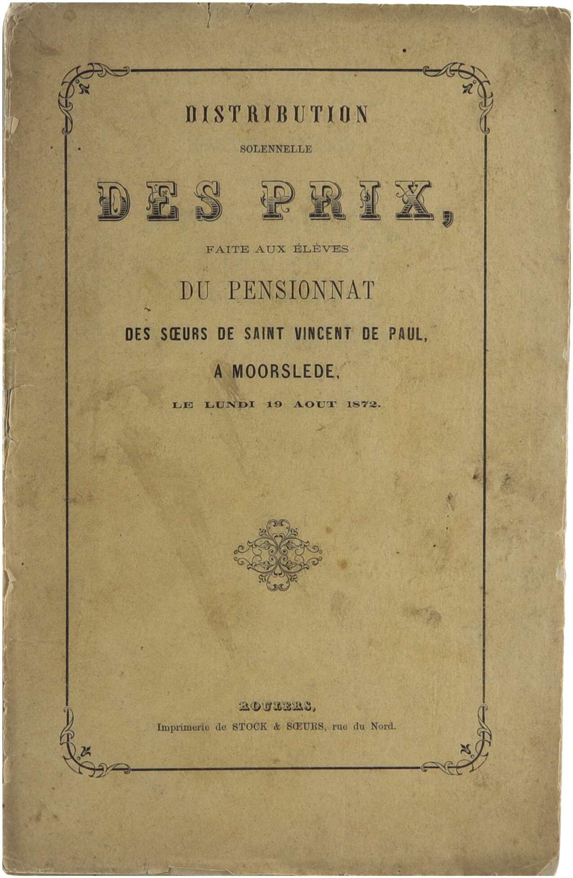 Distribution solennelle des prix faite aux élèves du pensionnat des soeurs de Saint Vincent de Paul à Moorslede