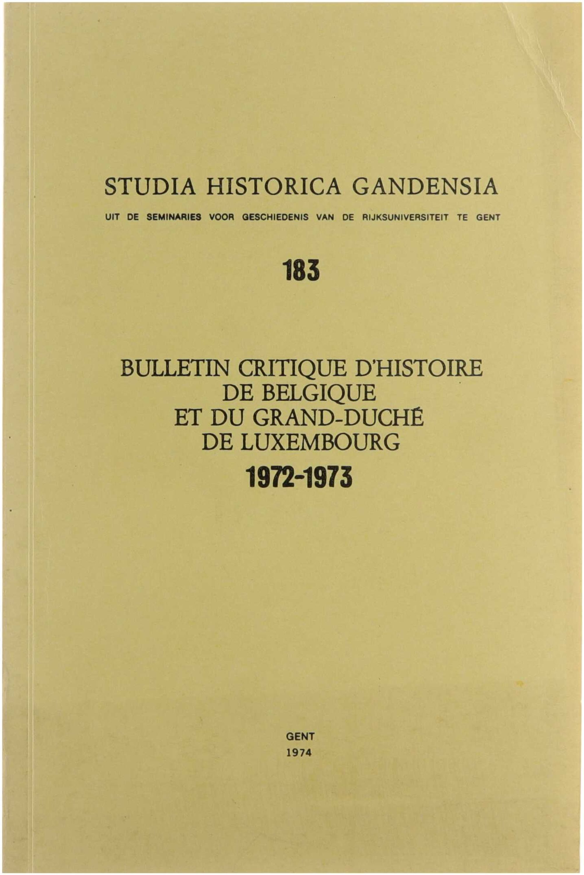 Studia historica Gandensia (uit de seminaries voor geschiedenis van de Rijksuniversiteit te Gent) 183