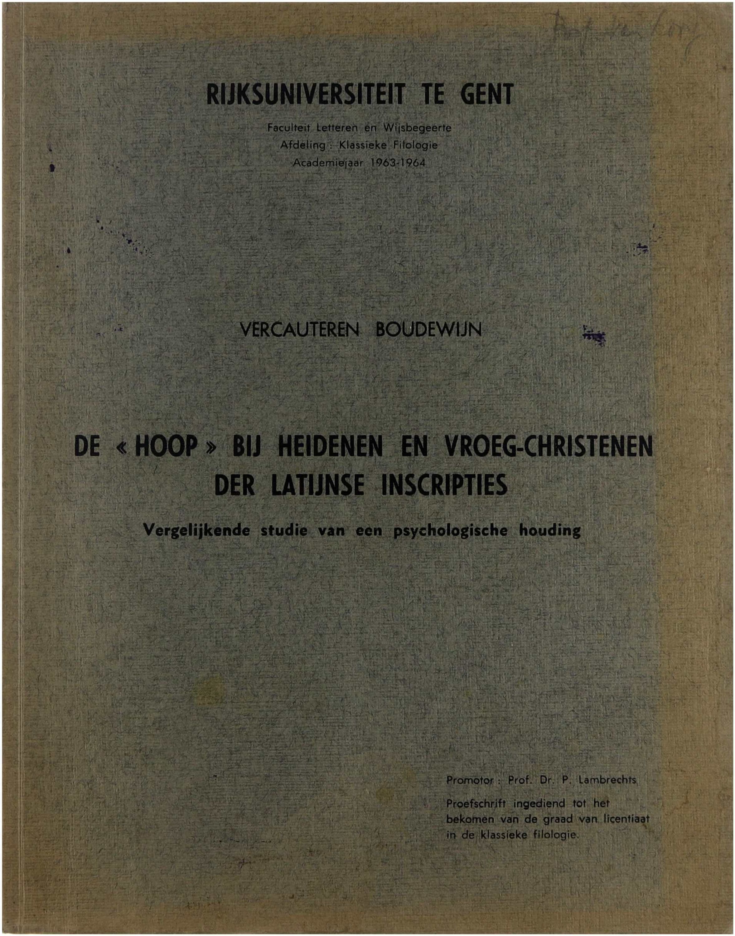 De "hoop" bij heidenen en vroeg-christenen der Latijnse inscripties. Vergeijkende studie van een psychologische houding