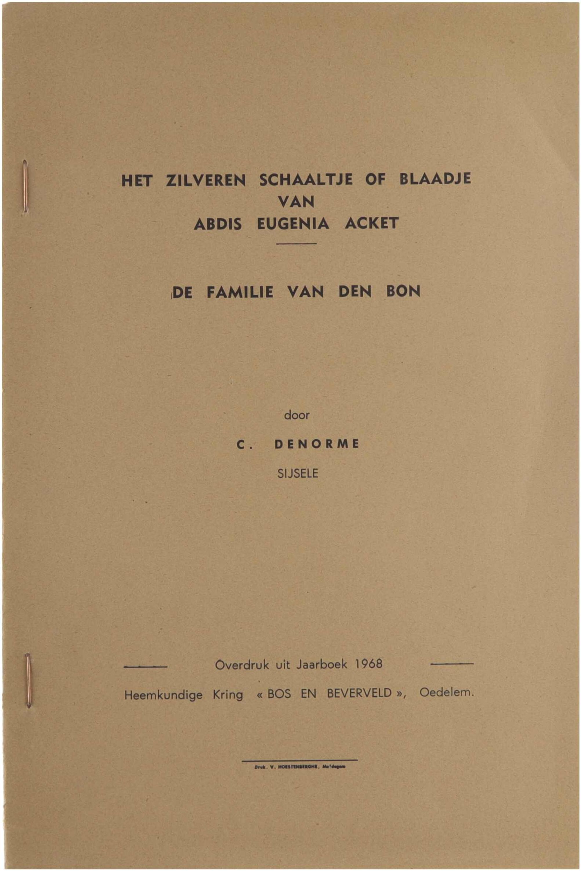 Overdruk uit het jaarboek van de heemkundige kring 'Bos en Beverveld' - Oedelem