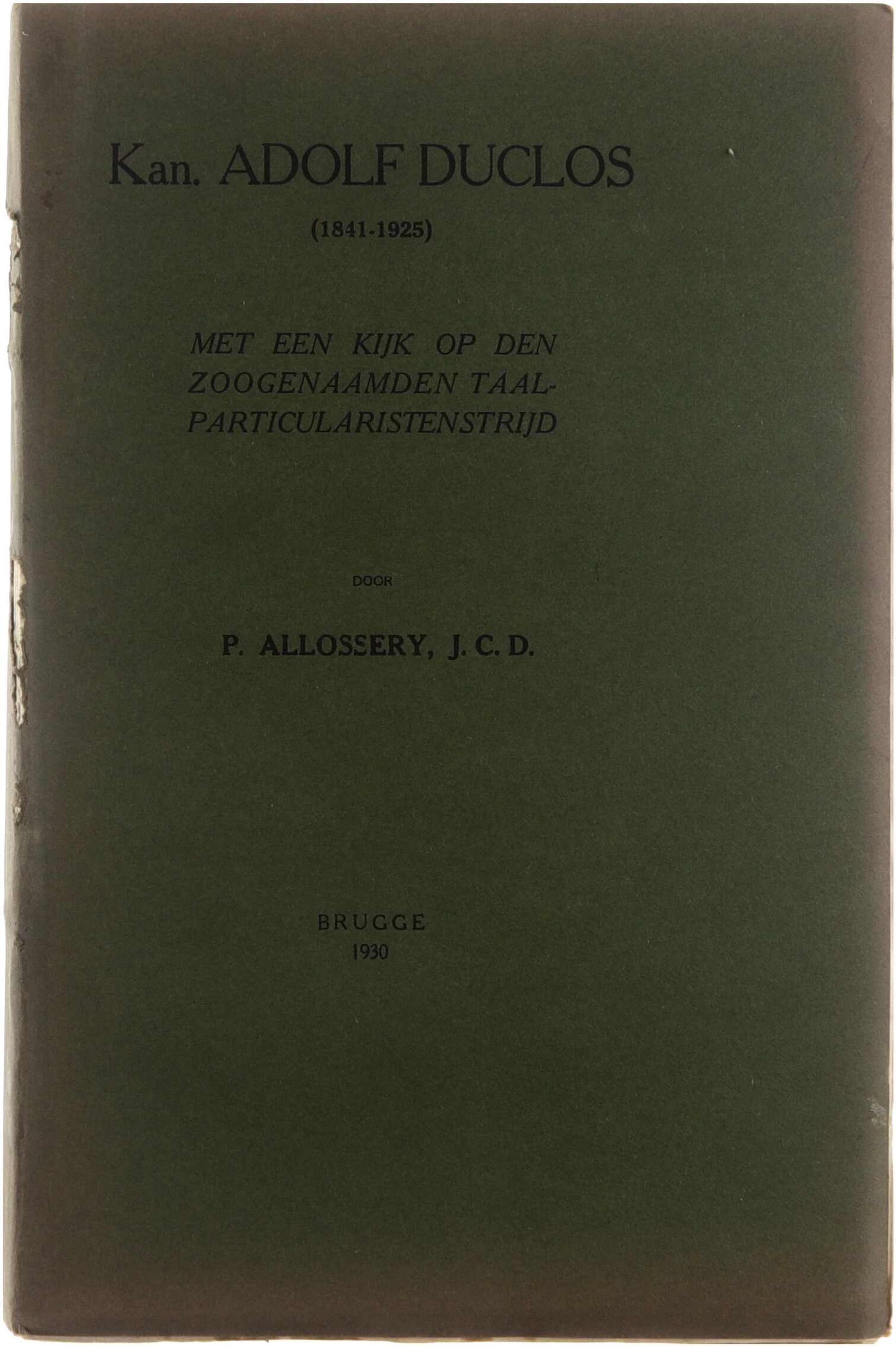 Dit werk is een biografische en historische studie van Adolf Duclos (1841-1925) — kanunnik, actief in West-Vlaanderen — met bijzondere aandacht voor zijn rol en positie in de zogenaamde “taal-particularistenstrijd” in West-Vlaanderen. De auteur beschrijft Duclos’ levensloop, zijn optreden voor taalrechten, zijn letterkundige en oudheidkundige activiteiten, evenals zijn betrokkenheid bij de sociaal-culturele en taalkundige bewegingen van zijn tijd