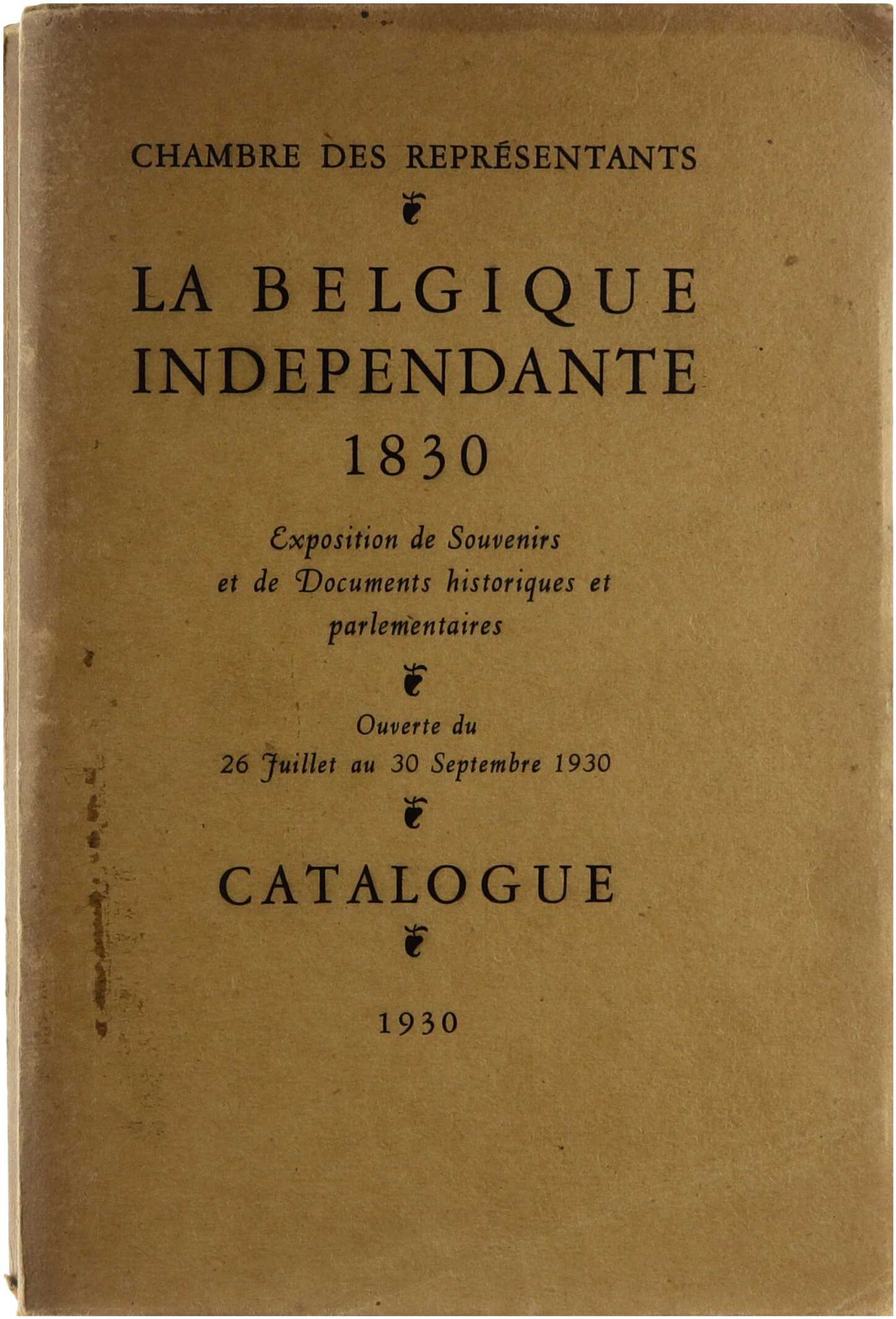 La Belgique indépendente 1830. Exposition de Souvenirs et de documents historiques et parlementaires. Ouverte du 26 Juillet au 30 Septembre 1930. Catalogue