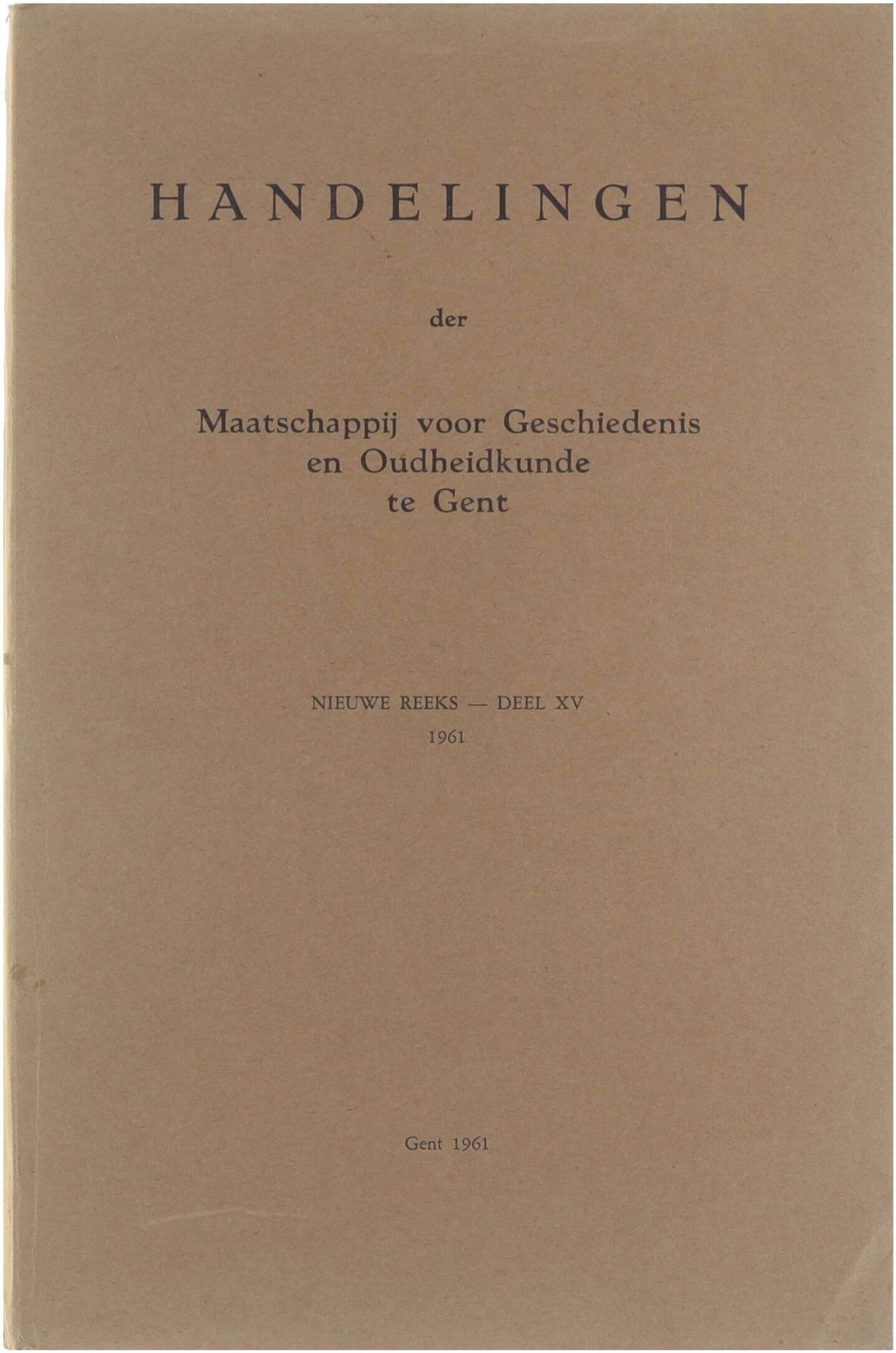 Handelingen der Maatschappij voor Geschiedenis en Oudheidkunde te Gent Nieuwe reeks Deel XV