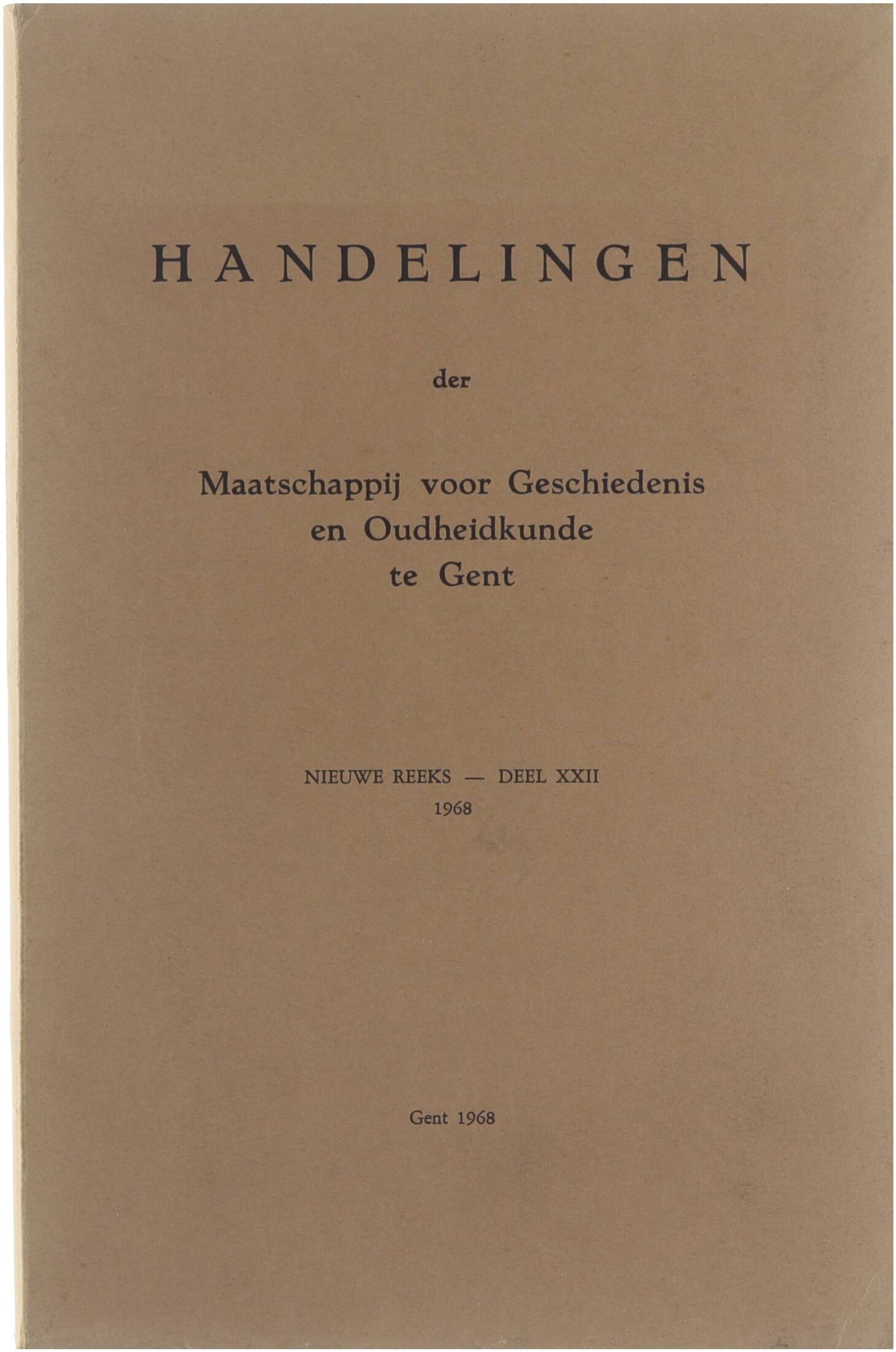 Handelingen der Maatschappij voor Geschiedenis en Oudheidkunde te Gent Nieuwe reeks Deel XXII