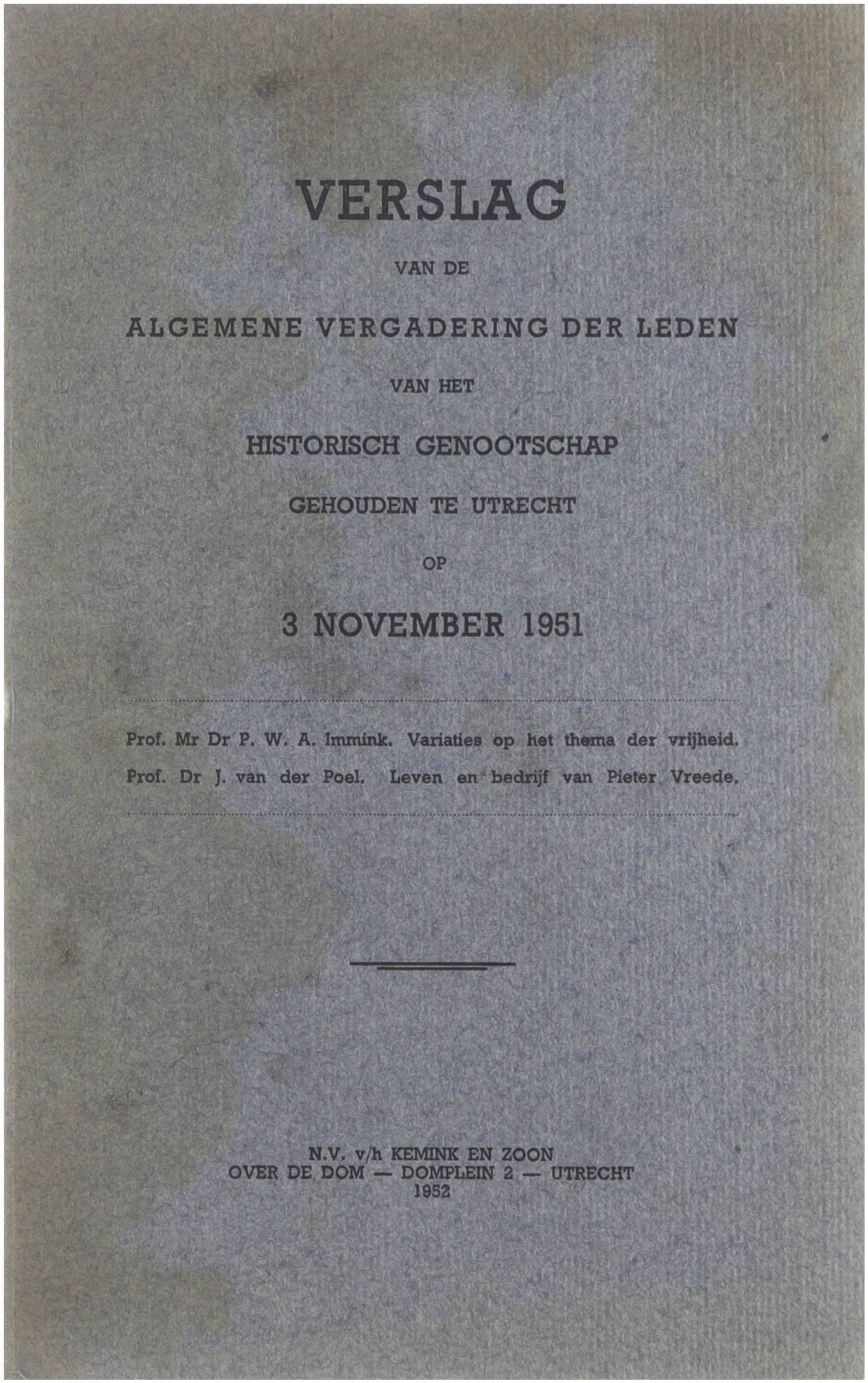 Verslag van de Algemene Vergadering der Leden van het Historisch Genootschap, gehouden te Utrecht op 3 november 1951