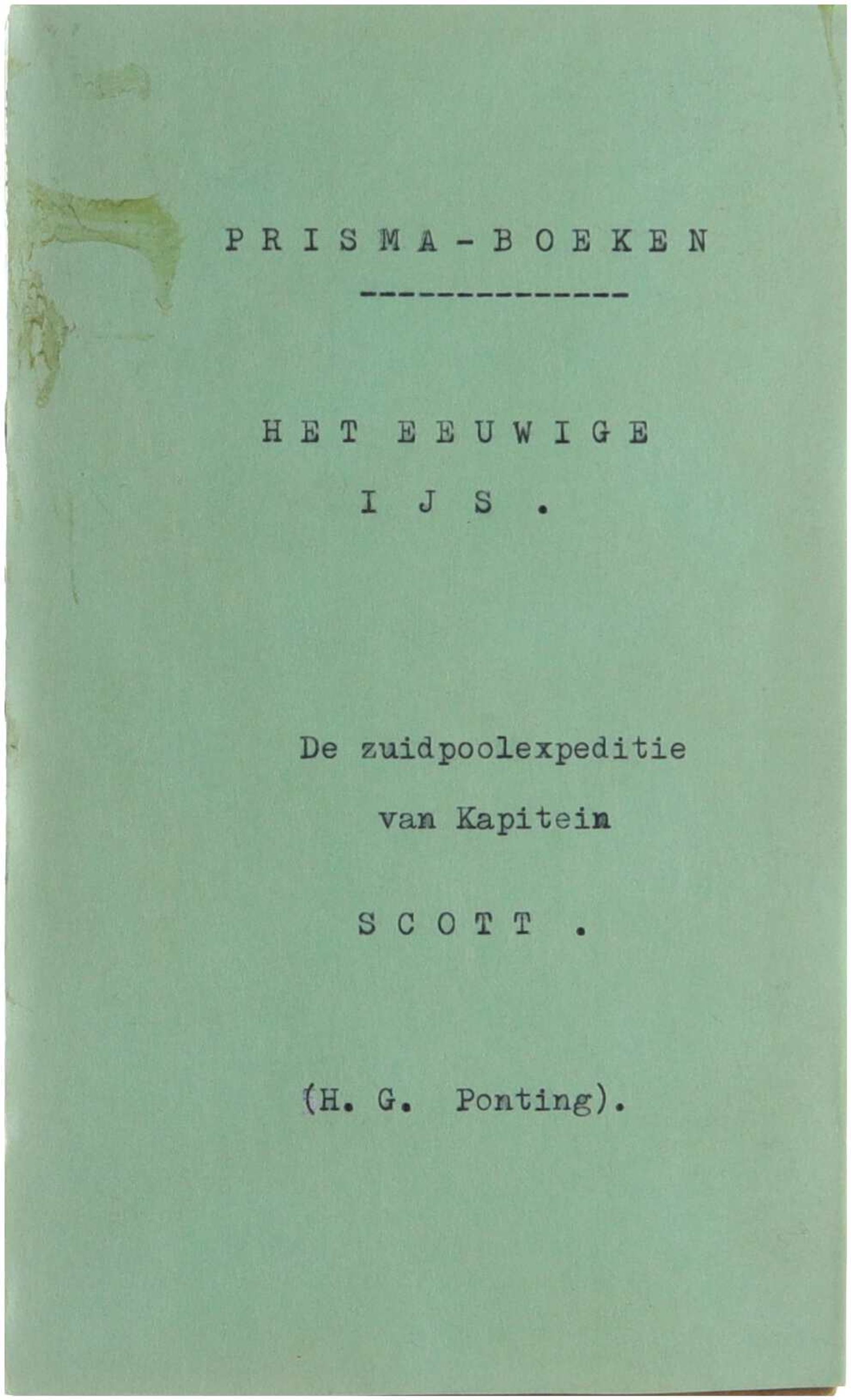 Verkleuring. Omslag vervuild, vooromslag ontbreekt.