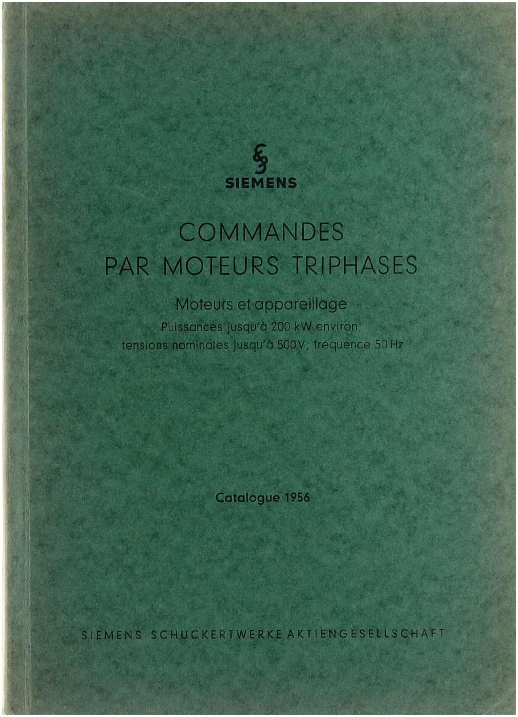 Commandes par moteurs triphases - Moteurs et appareillage - Puisances jusqu'à 200 kw environ; tensions nominales jusqu'à 500v; fréquence 50 Hz - Catalogue 1956