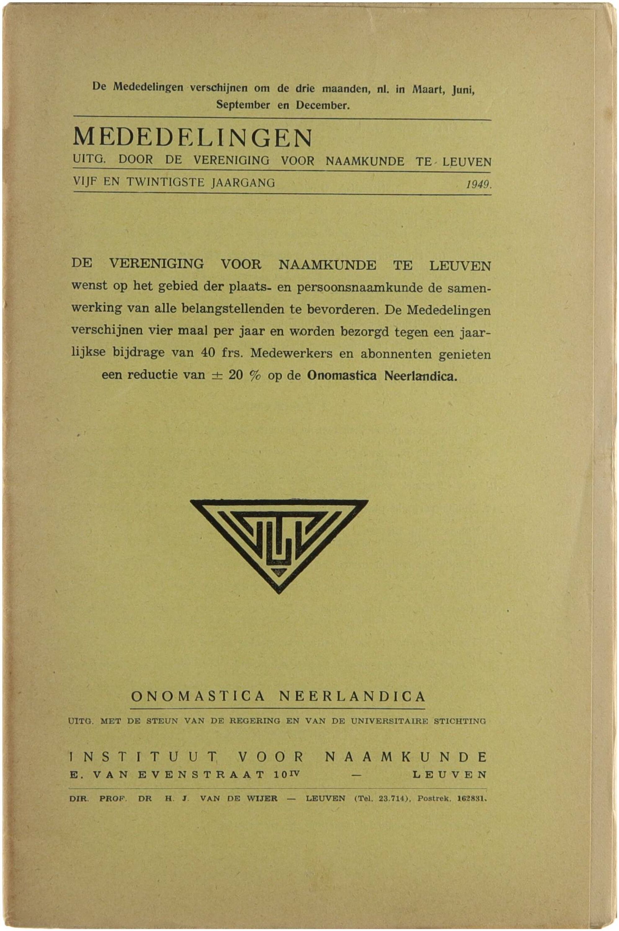 Onomastica Neerlandica: Mededelingen, 25e jaargang 1949